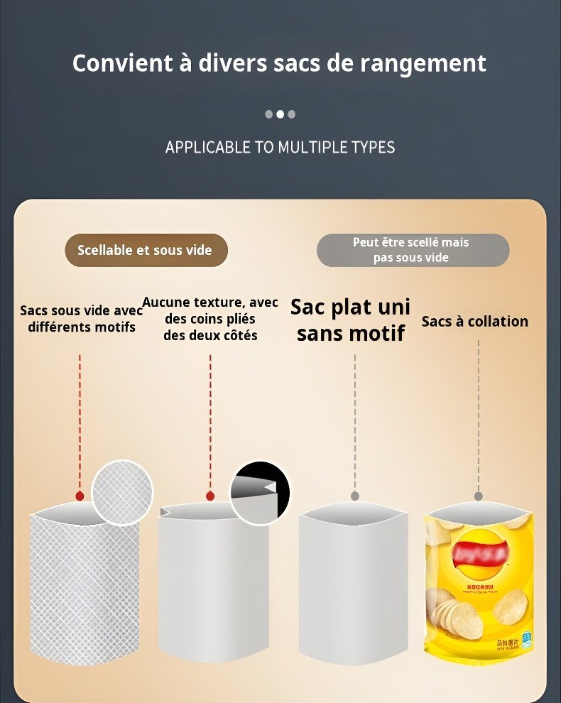 ● Conservez vos aliments frais jusqu'à 5 fois plus longtemps grâce à cette machine de mise sous vide compacte, idéale pour limiter le gaspillage alimentaire à la maison. ● Facile à utiliser et à ranger, son format compact s'adapte parfaitement à toutes les cuisines, même les plus petites espaces. ● Livrée avec des rouleaux de sacs, elle permet de personnaliser la taille des emballages selon vos besoins, pour une conservation sur-mesure de vos aliments. ● Fonctionnement silencieux et rapide, cette machine garantit une mise sous vide efficace en quelques secondes pour préserver la saveur et les nutriments de vos produits. ● Parfaite pour les familles et les amateurs de batch cooking, elle vous aide à organiser vos repas à l’avance et à gagner du temps au quotidien.